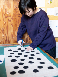 帆布と同じシャトル織機で織った厚みのある丈夫なリネン生地は、使い込むことで柔らかく手に馴染みます。ドット柄シリーズは全13色とカラーも豊富です。
